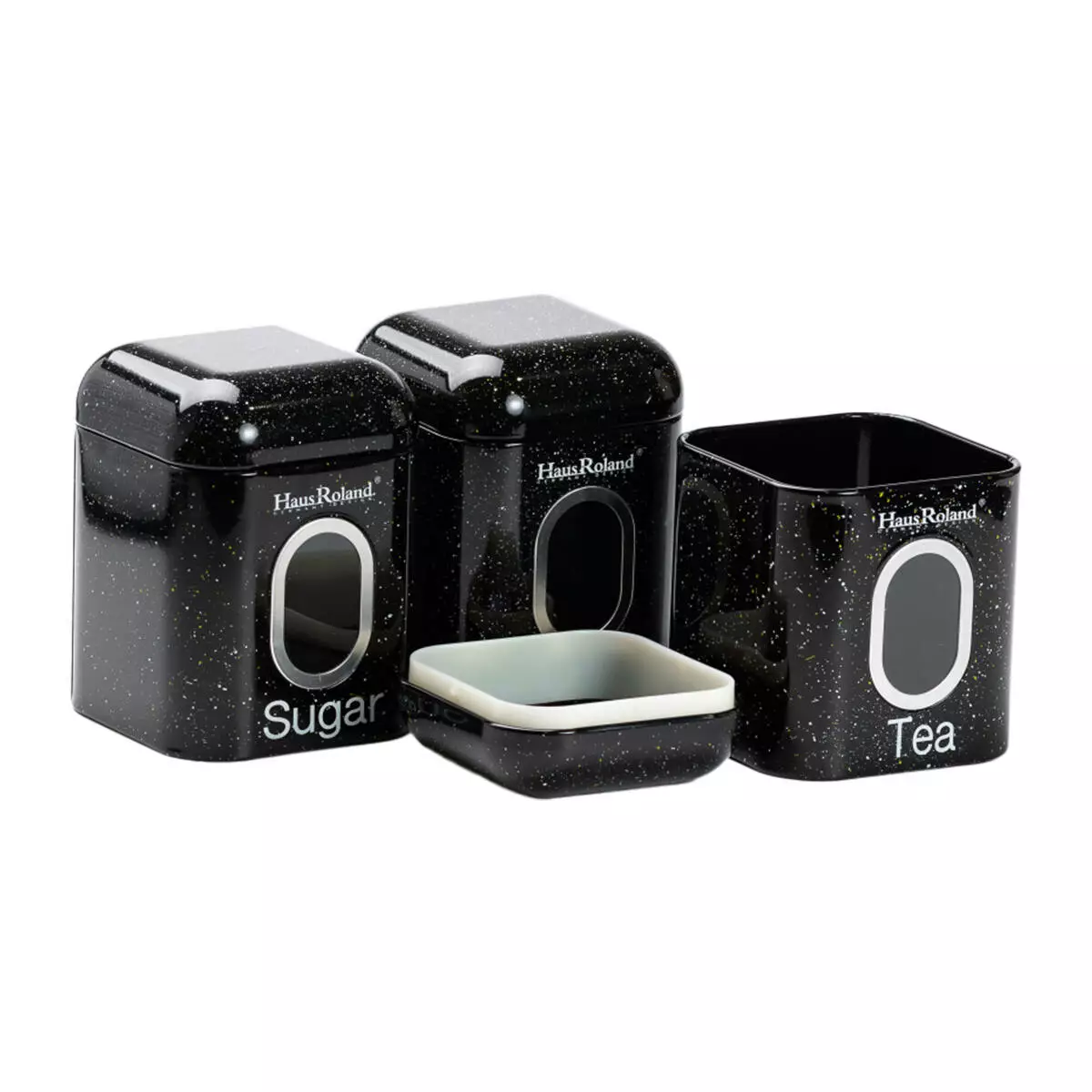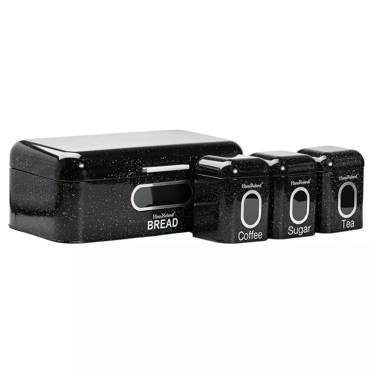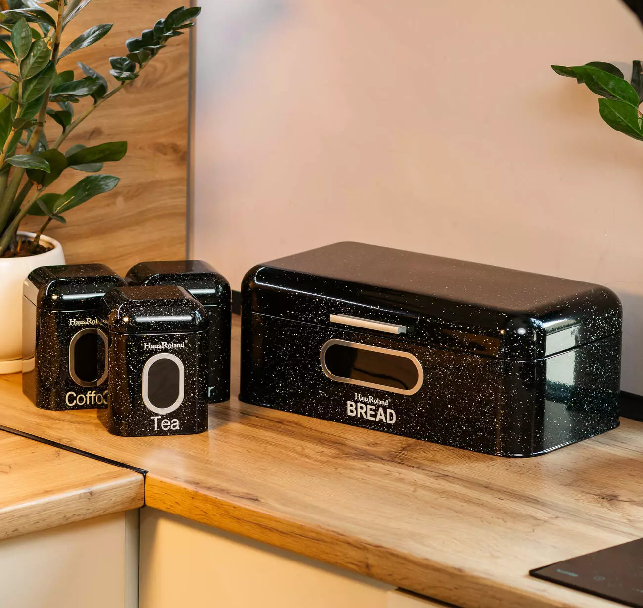 Набір для зберігання продуктів Haus Roland – стильне та функціональне рішення для організації кухонного простору. У набір входить містка хлібниця та 3 банки для сипучих продуктів із прозорою вставкою, що дозволяє контролювати кількість вмісту.