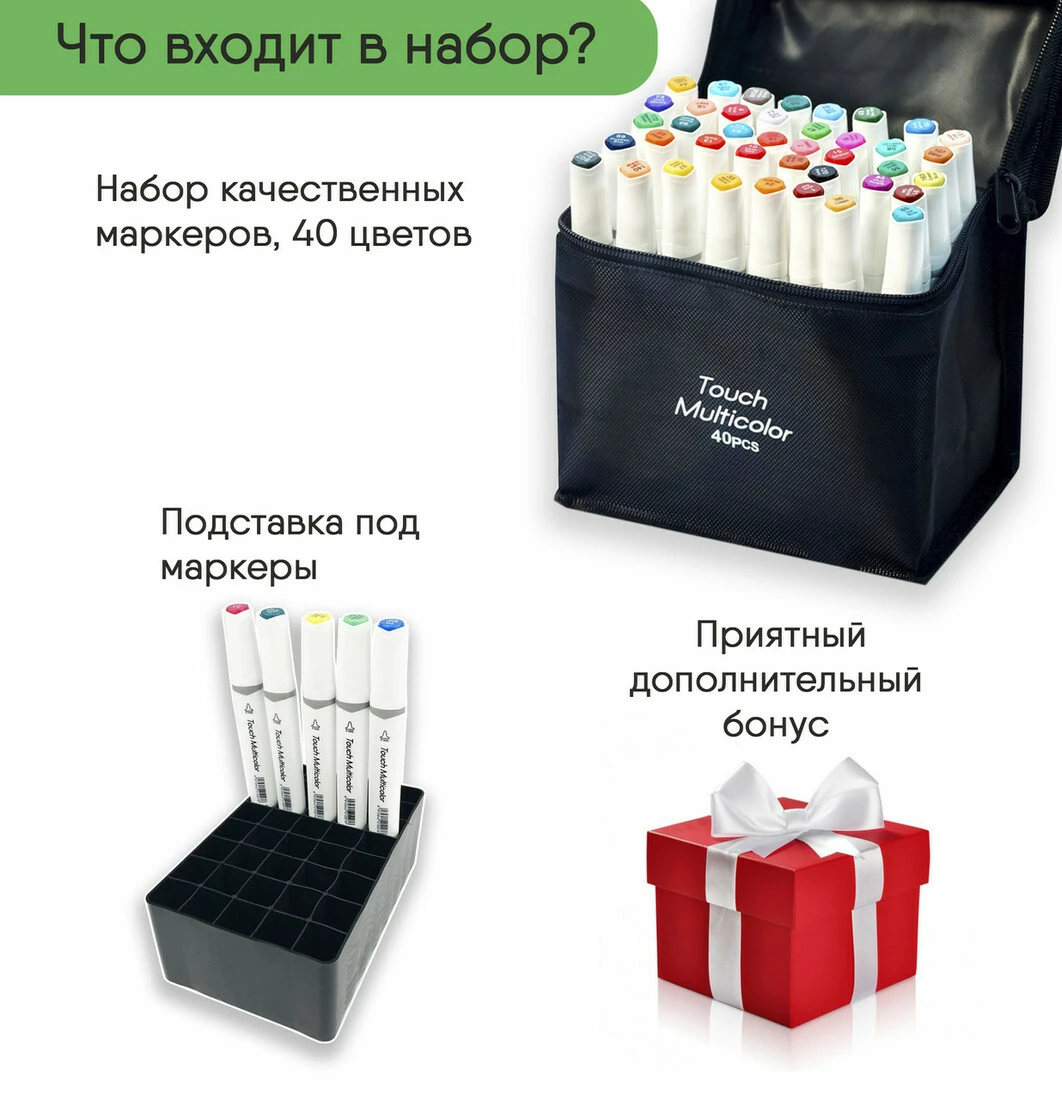 У наборі 40 маркерів різних кольорів. Корпус пластиковий гладкий.