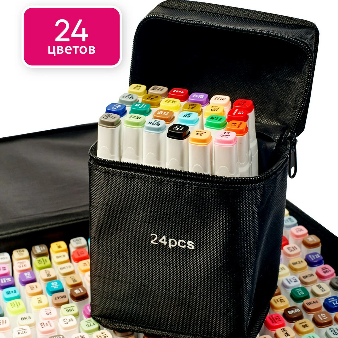 У наборі 24 маркерів різних кольорів + подарунок!