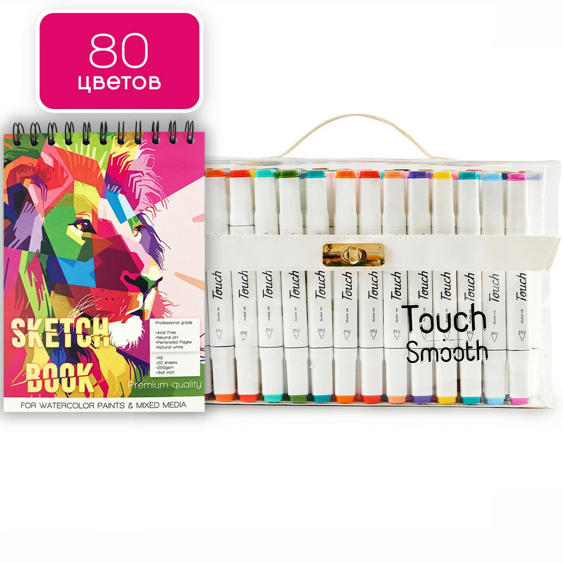 Набір маркерів двосторонніх Touch Smooth 80 кольорів та Папір для