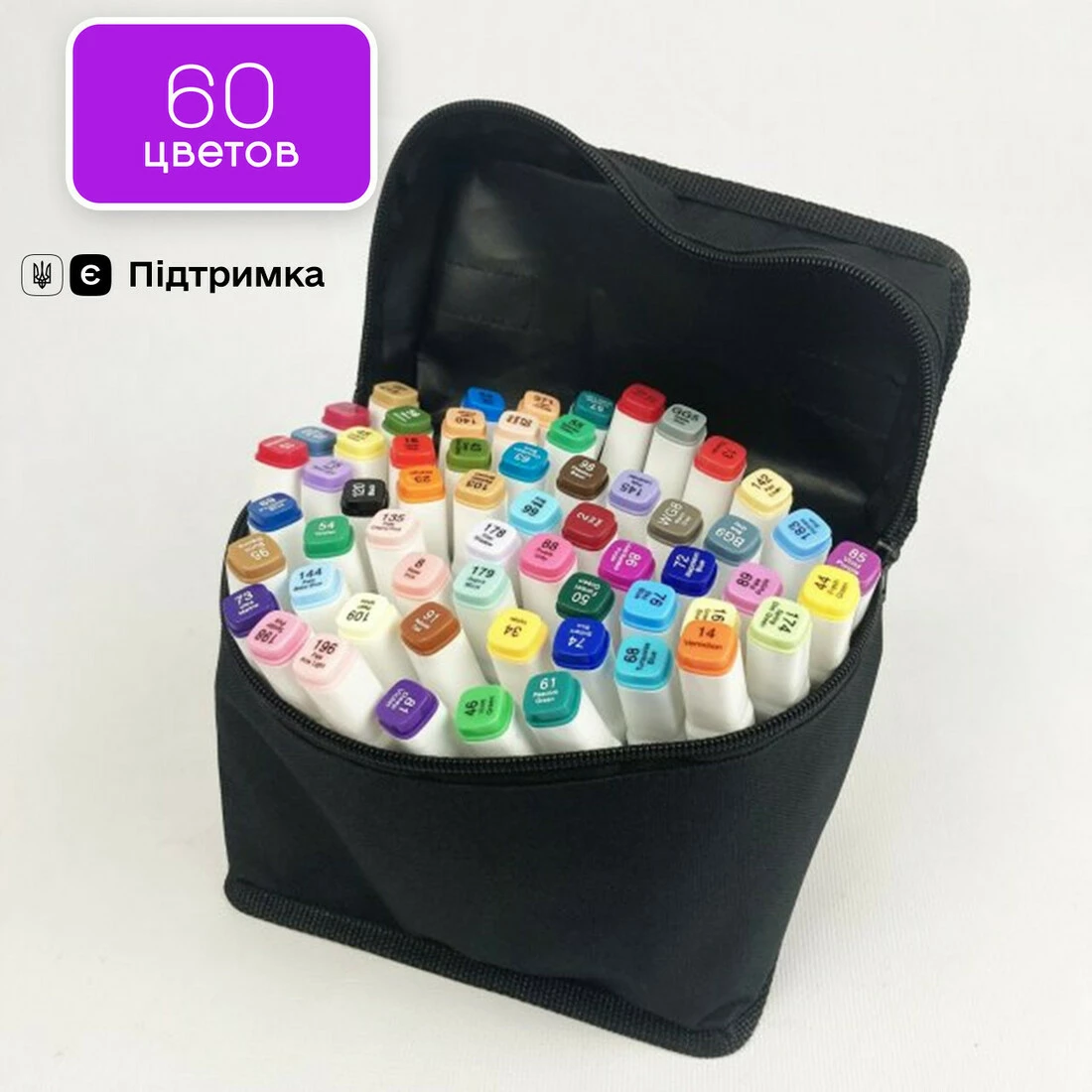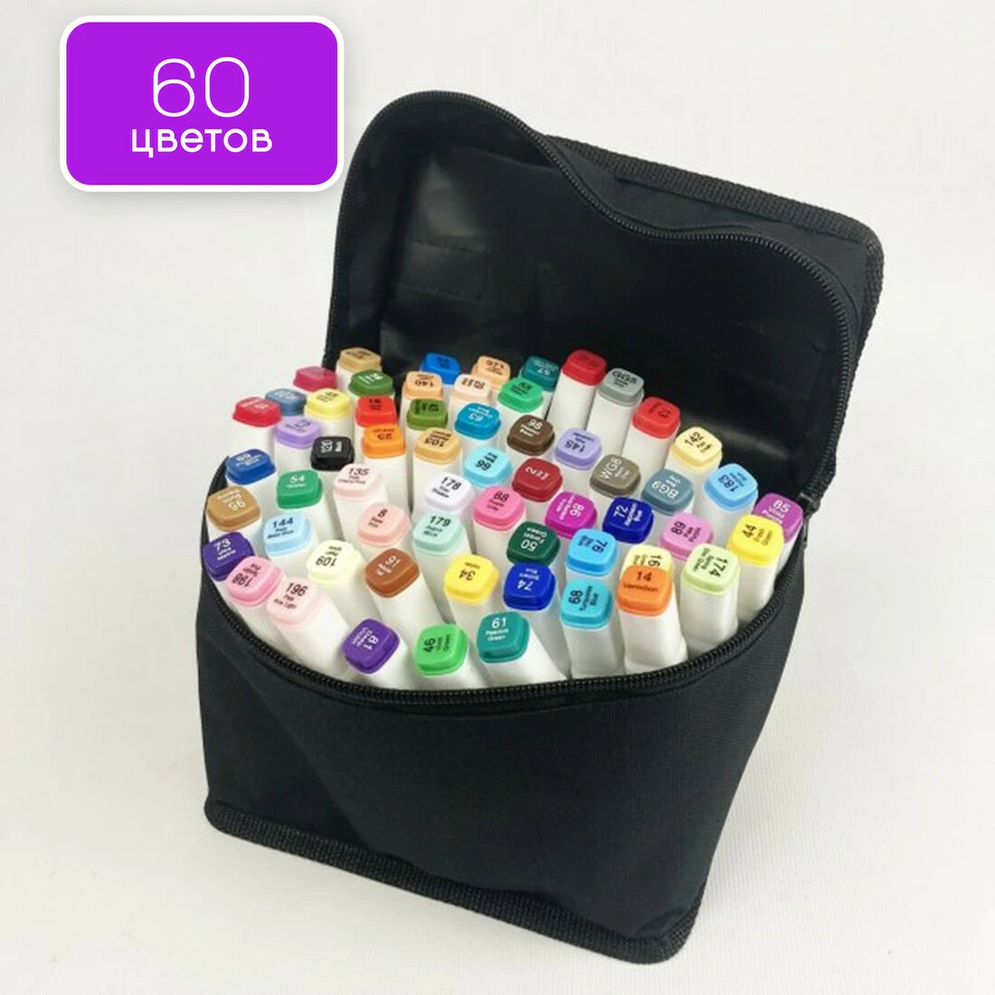 У наборі 60 маркерів різних кольорів.