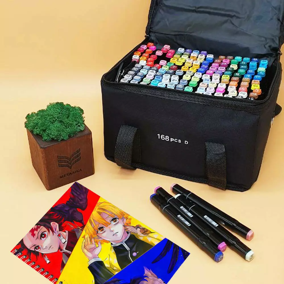 Набір двосторонніх скетч маркерів 168 штук Touch Raven, на спиртовій основі ART 8000 (8 шт./ясть)