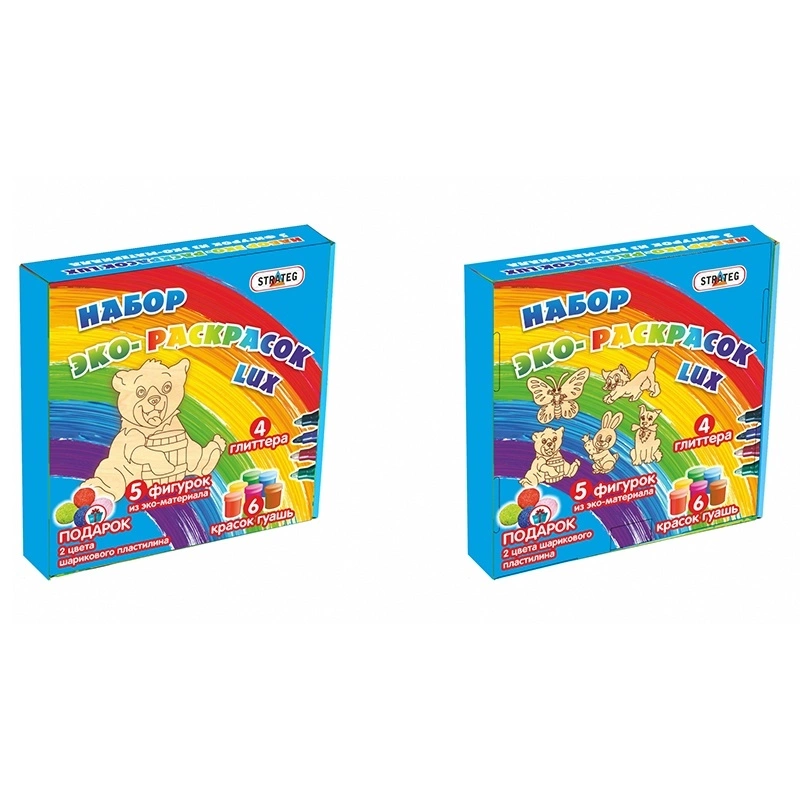 Розфарбування - це не тільки картина, але і весела і цікава історія, яку кожен малюк може створити сам за допомогою набору еко-розмальовок «LUX Мишка і друзі» (Стратег Арт.3039). Основна особливість набору - наявність образотворчих матеріалів різної структури і квітів, що значно збільшує художні можливості маленького творця. Дитина сам зможе визначити, як буде виглядати первісна картинка в результаті його творчих зусиль, підібрати кольори, використовувати для прикраси різні матеріали. Сам процес допоможе малюкові поринути у світ фантазії, навчить концентрувати увагу, розрізняти і комбінувати кольори, привчить до акуратності і наполегливості в досягненні мети. Незайвим буде і фізичний розвиток - координація рухів і зусилля маленьких пальчиків при малюванні. Розфарбовування картинок стане не просто веселою розвагою, але і допоможе розвинути творчі здібності, впевненість в своїх силах і сформувати особистість дитини. У наборі не тільки кольорові гуашеві фарби, але і такий цікавий матеріал, як кольоровий кульковий пластилін - з його допомогою зображення придбає обсяг, а також гліттери кількох кольорів, за допомогою цього блискучого матеріалу зображення придбають святковість і неповторний вигляд. Готові зображення кумедних звірят стануть прикрасою дитячої кімнати або незабутнім подарунком. Характеристики: Вік: 6 Матеріал: картон; Комплект: 5 картинок-фігурок, шість фарб, кульковий пластилін двох кольорів, чотири кольорових Гліттера; Розмір упаковки: 25 x 25 x 5 см