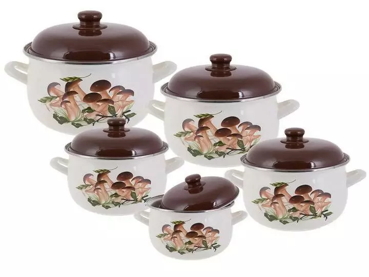 Це якісний набір посуду, який відрізняється стильним, красивим дизайном. Він складається з п'яти каструль різного обсягу. Посуд довговічний, оскільки виконана з міцної і високоякісної нержавіючої сталі.