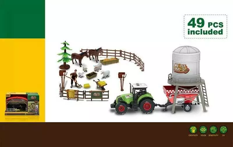 Набір фермера 550-33 K (12) 49 елементів, трактор, підсвічування, звук, інерція, причеп, силосна вежа, стайня, фігурка фермера, тварини,в коробці