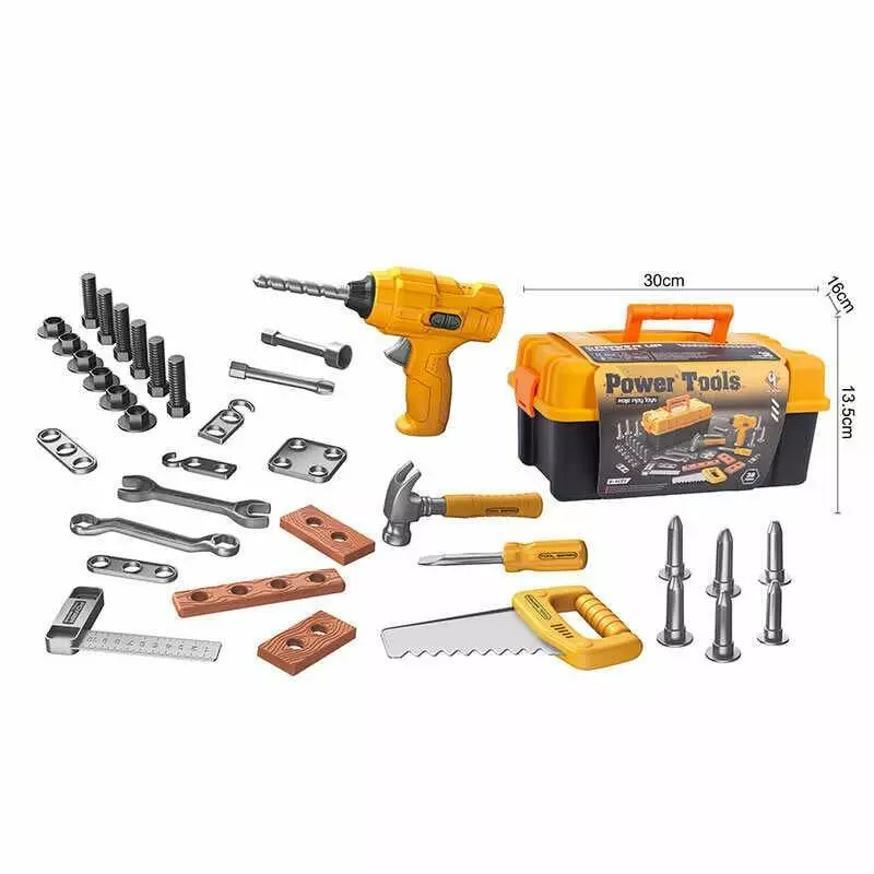 Набір інструментів T 034 (12) дриль механічна, пила, молоток, викрутка, лінійка, болти, гайки, кріплення, в боксі