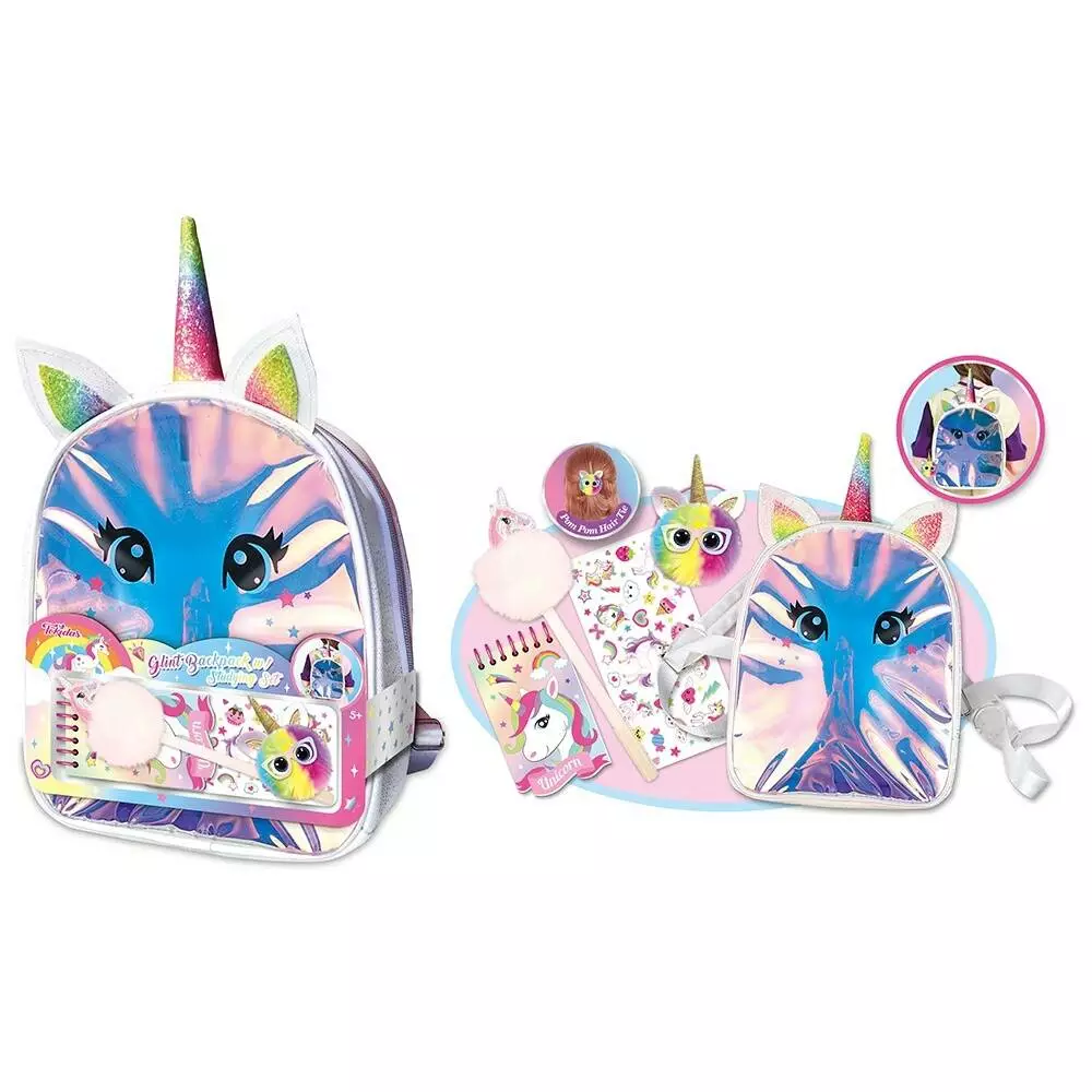Фотография 1 товарной позиции интернет-магазина детских игрушек www.smarttoys.com.ua Набір канцелярський T413 єдиноріг, блокнот, ручка, брелок, аксесуар, 2 кольори, рюкзак-20-27-10см.