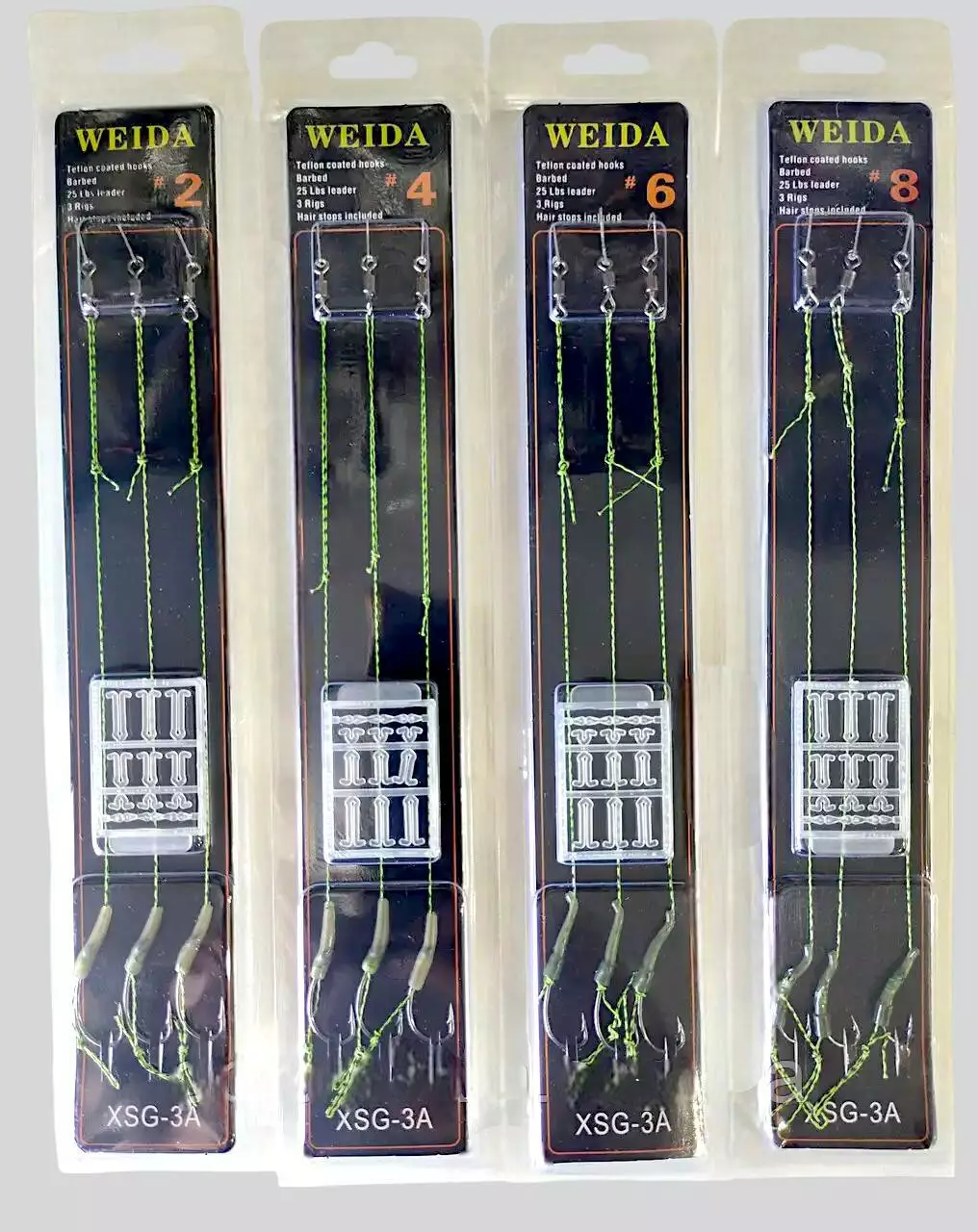 Набір готових карпових поводків Weida — ідеальне рішення для ловлі коропа на бойли, вафтери та інші насадки. Поводки виготовлені з міцного плетеного матеріалу (тест 25 lbs), що гарантує витривалість при ловлі великої риби. Оснащені якісними гачками з тефлоновим покриттям та вертлюгами для швидкої і зручної заміни монтажу. Зелений колір робить оснастку малопомітною у водоймі.