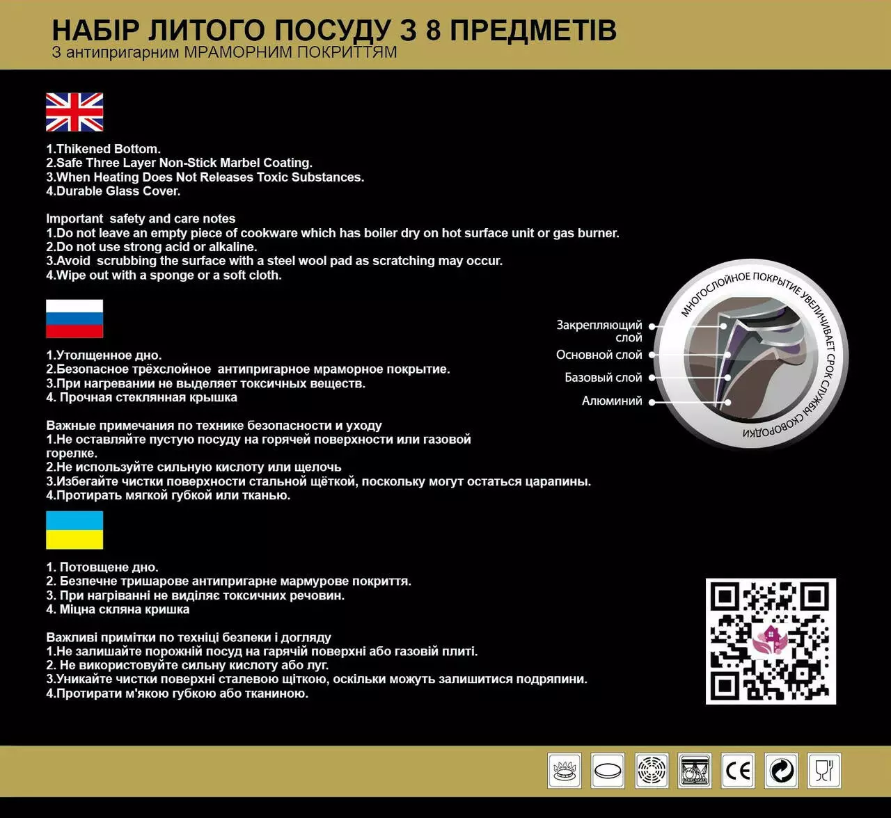 Набір каструль із Мармуровим покриттям 6 предметів BN-367 Чорний з білими домішками (4 шт./ящи)