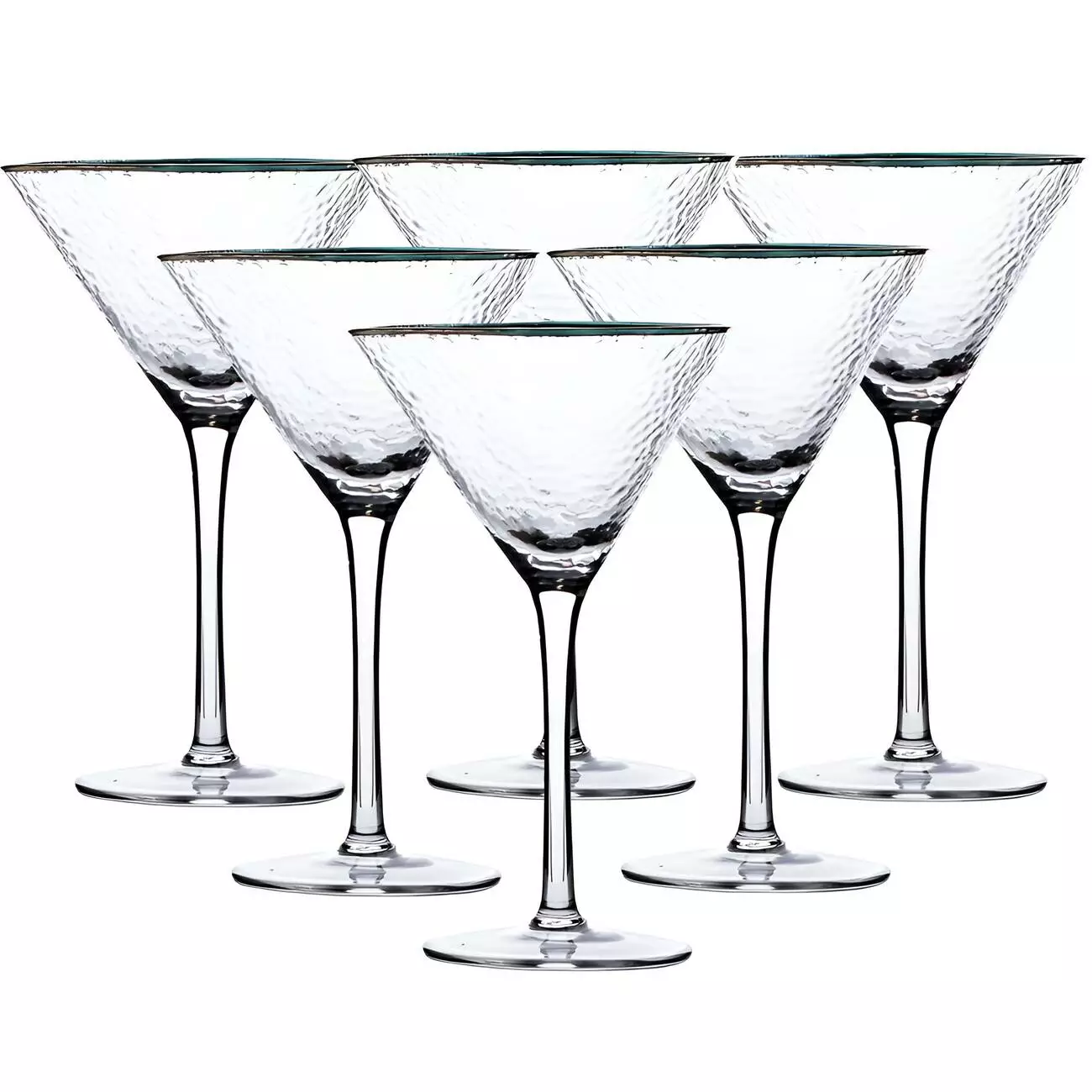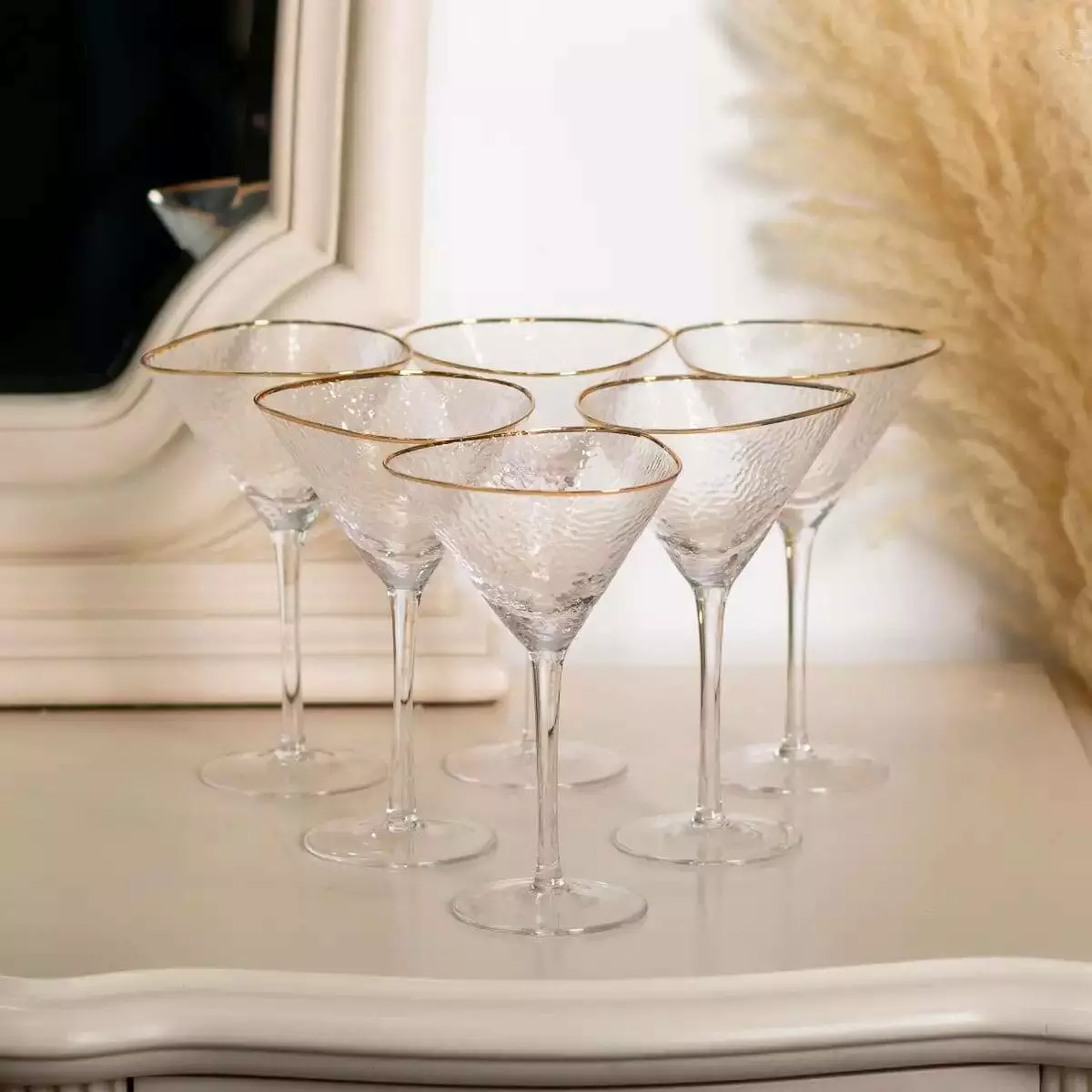 Загальна висота келихів становить 17,5 см, що робить їх ідеальними для комфортного тримання в руці. Місткість келиха — 200 мл, що підходить для класичної порції мартіні або інших коктейлів, які подаються у таких келихах. Золотий обідок додає не лише вишуканості, але й звертає увагу на витонченій формі виробу, роблячи келихи справжньою окрасою святкового столу.