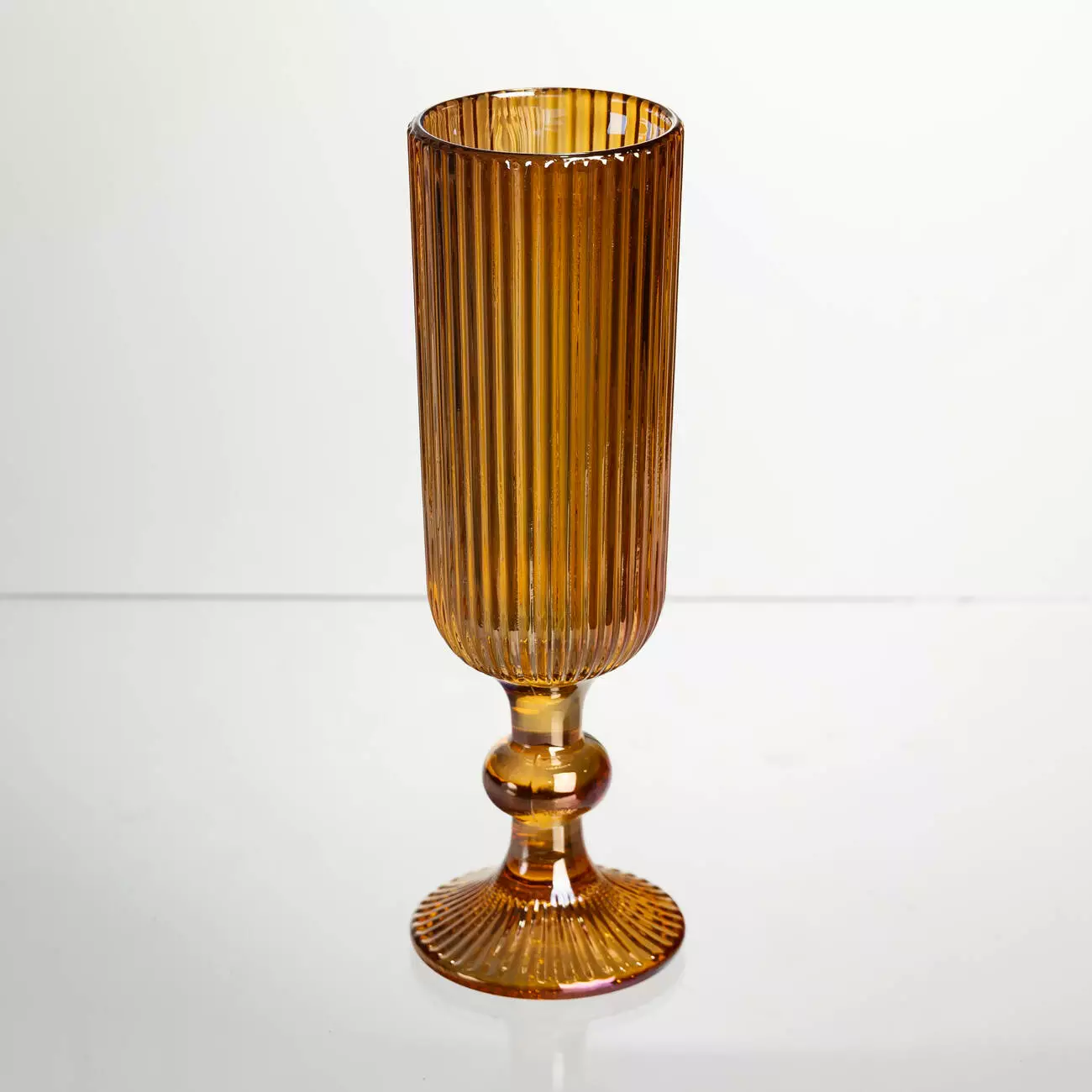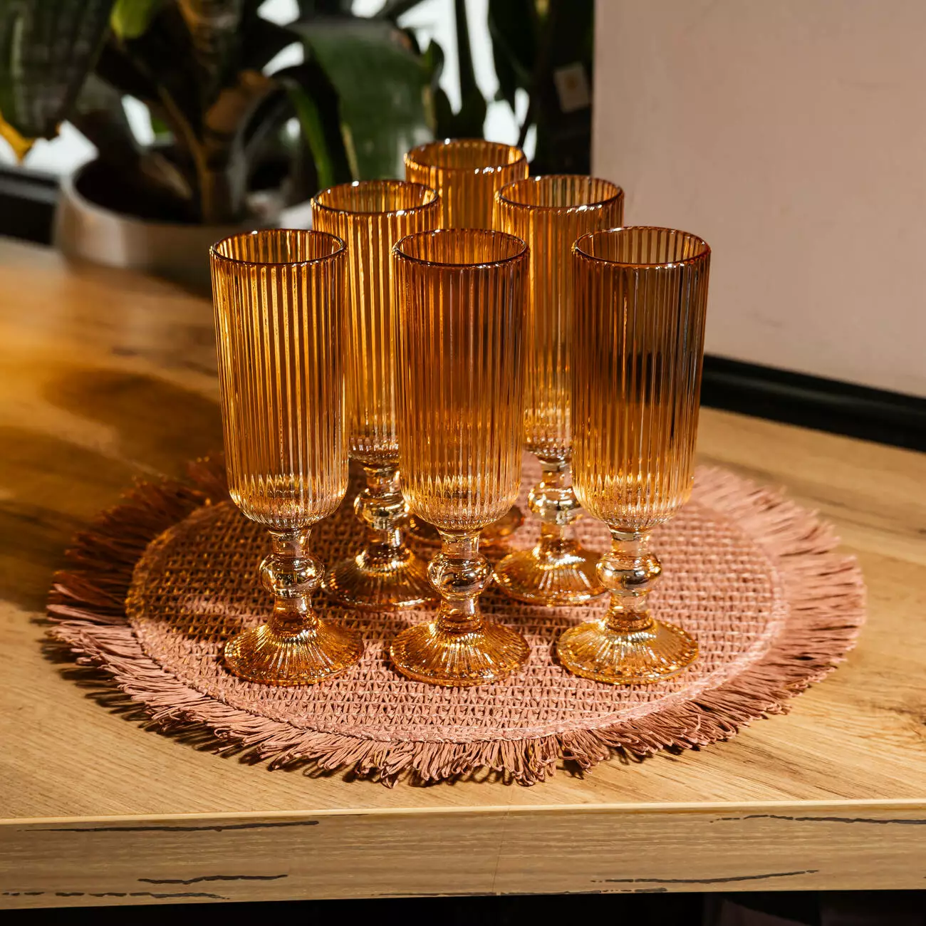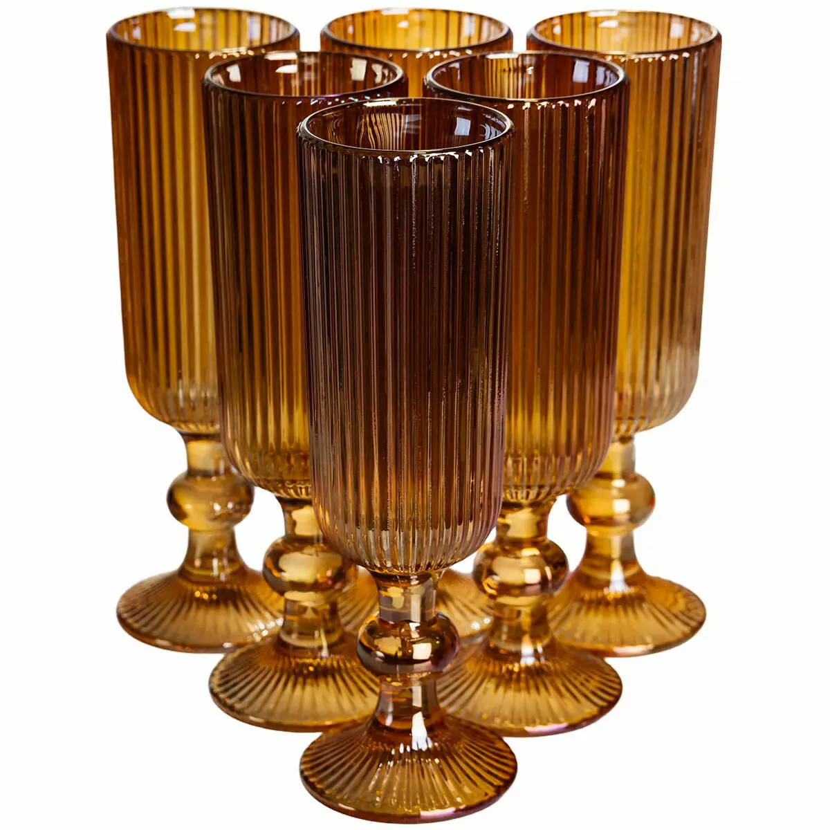 Набір келихів для шампанського 6 штук по 160 мл ребристих із товстого скла, бурштиновий