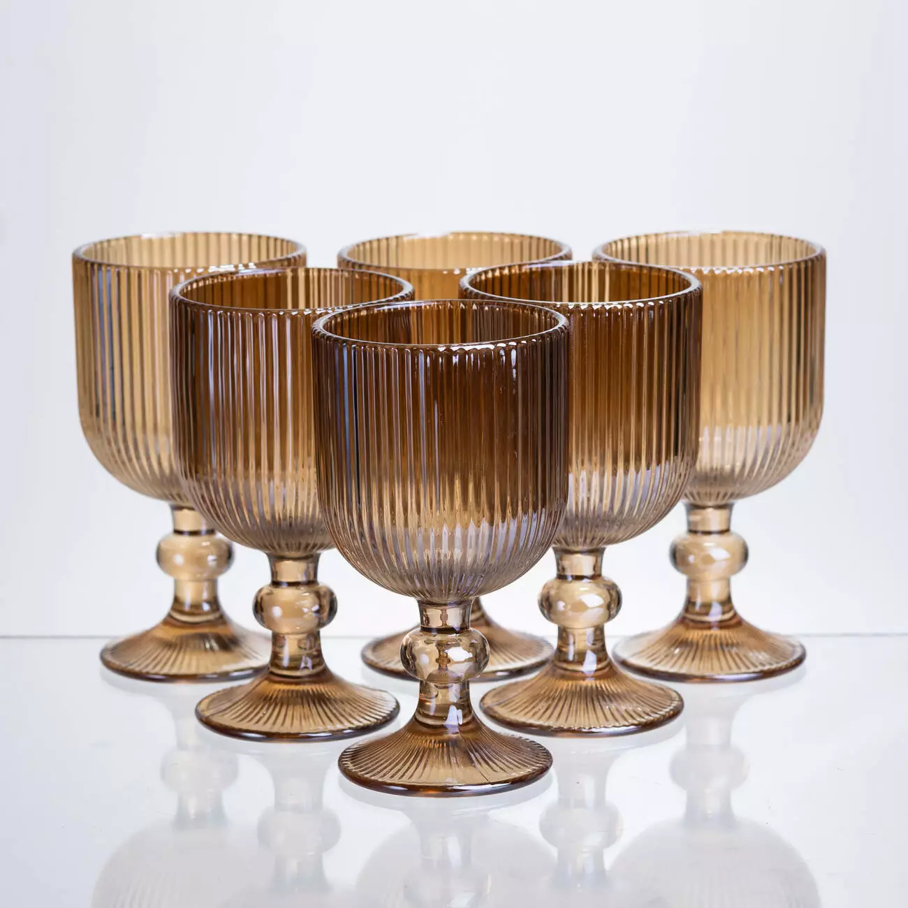 Набір келихів для вина 6 штук по 240 мл ребристих із товстого скла, коричневий
