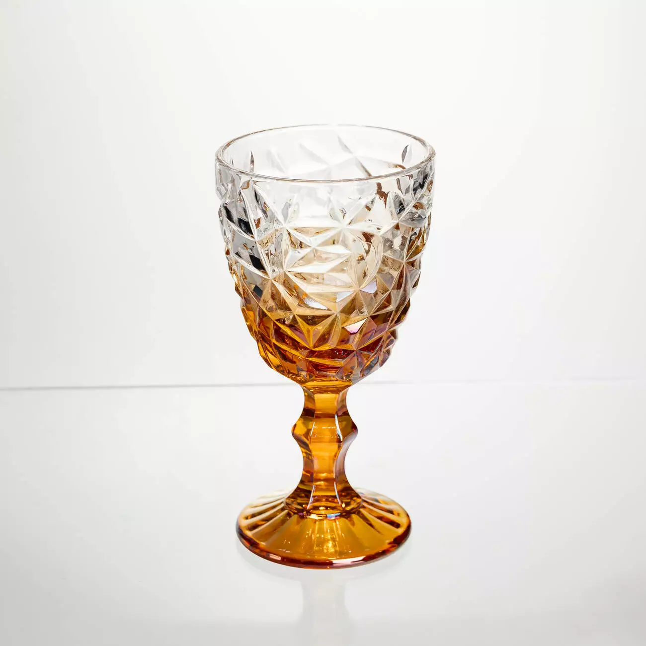 Об’єм 340 мл підходить для комфортної подачі вина. Рельєфний геометричний візерунок із перехрещених граней покриває чашу та ніжку, формуючи виразну текстуру і приємні тактильні відчуття під час використання.