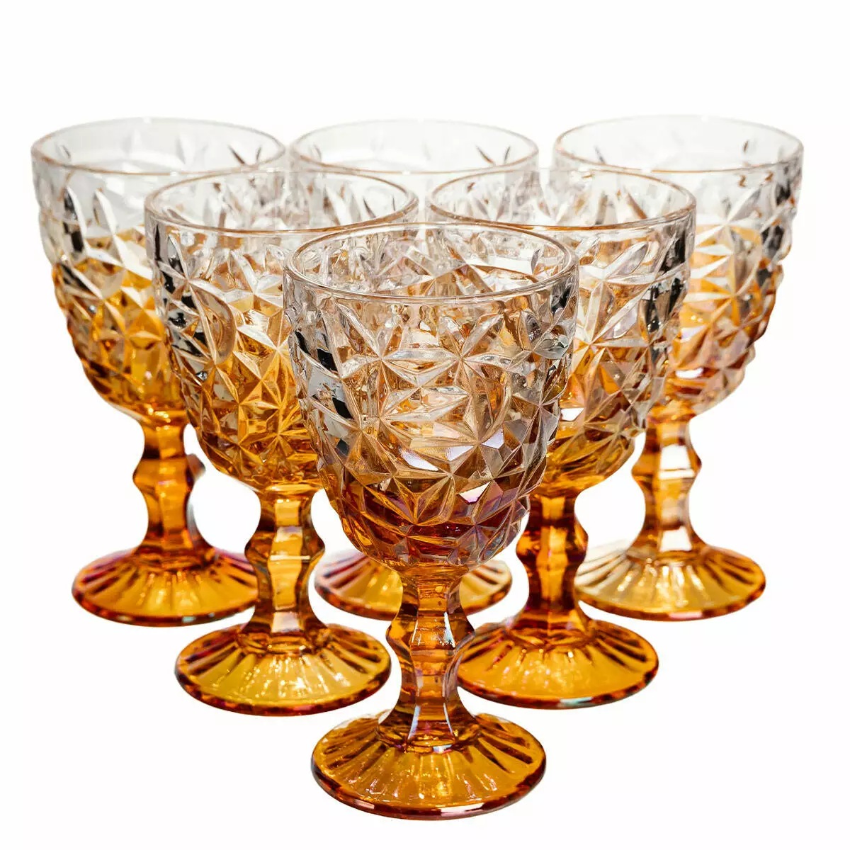 Набір келихів для вина Diamond Cut 6 штук по 340 мл із кришталевого скла, золотистий