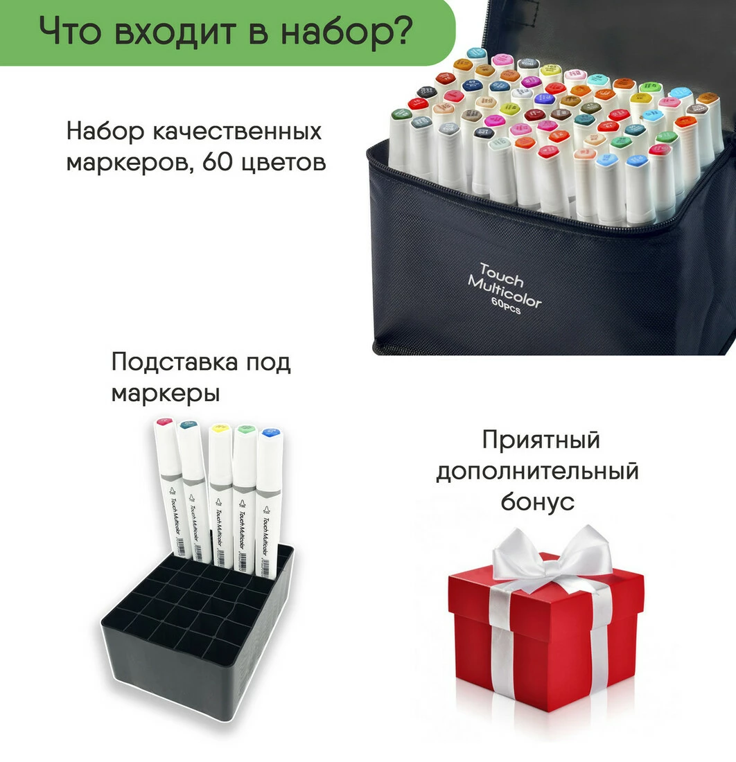Маркеры. Набор двусторонних маркеров Touch для рисования и скетчинга на спиртовой основе 60 штук