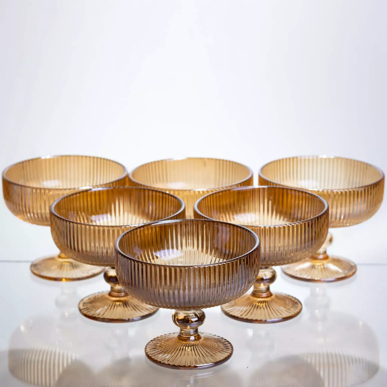 Набір креманок 6 штук по 340 мл ребристих із товстого скла, коричневий