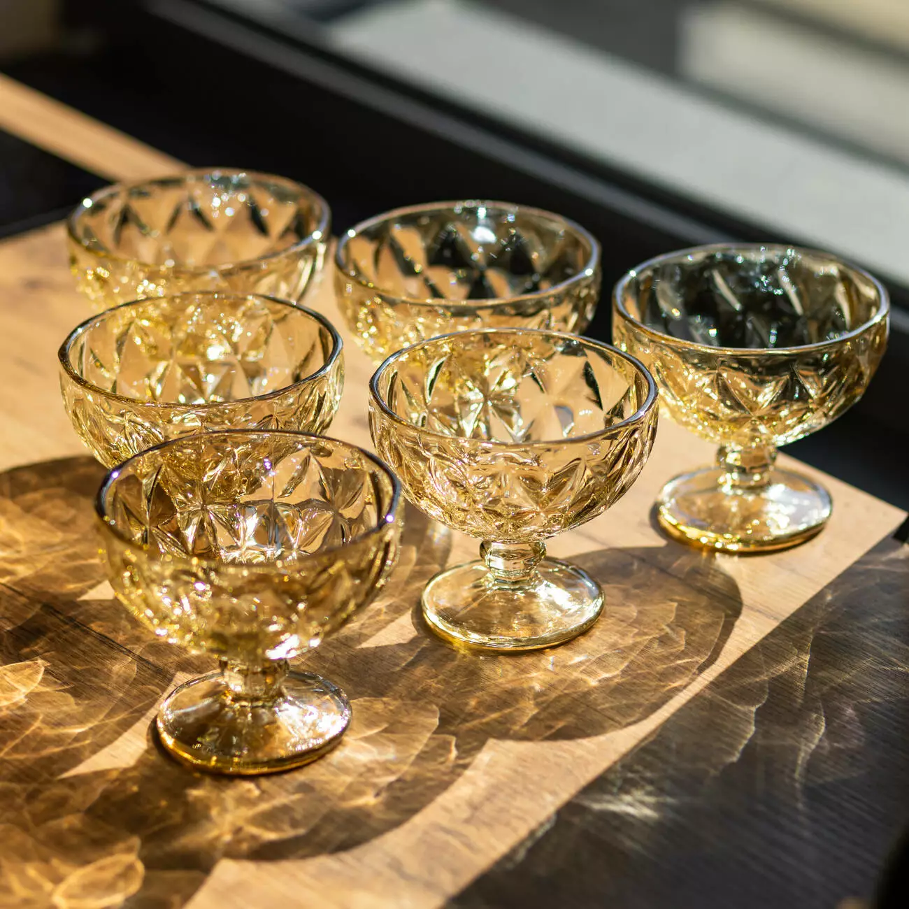 Елегантні креманки із тонованого скла у теплому бурштиновому