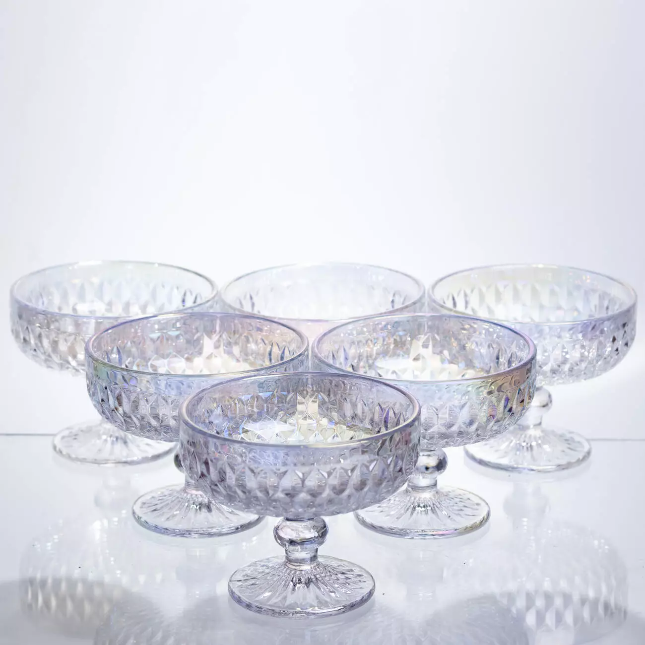 Набір креманок на ніжці з прозорого товстого скла призначений для подачі десертів, фруктових салатів, морозива та інших холодних страв. Завдяки універсальному формату набір зручний як для щоденного використання, так і для сервірування столу під час урочистих заходів або свят.
