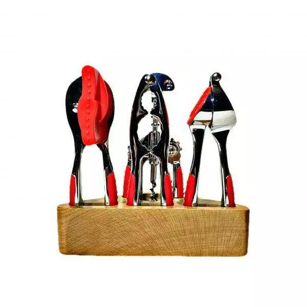 - У набір входять: ніж для чищення овочів, горіхокол, штопор,