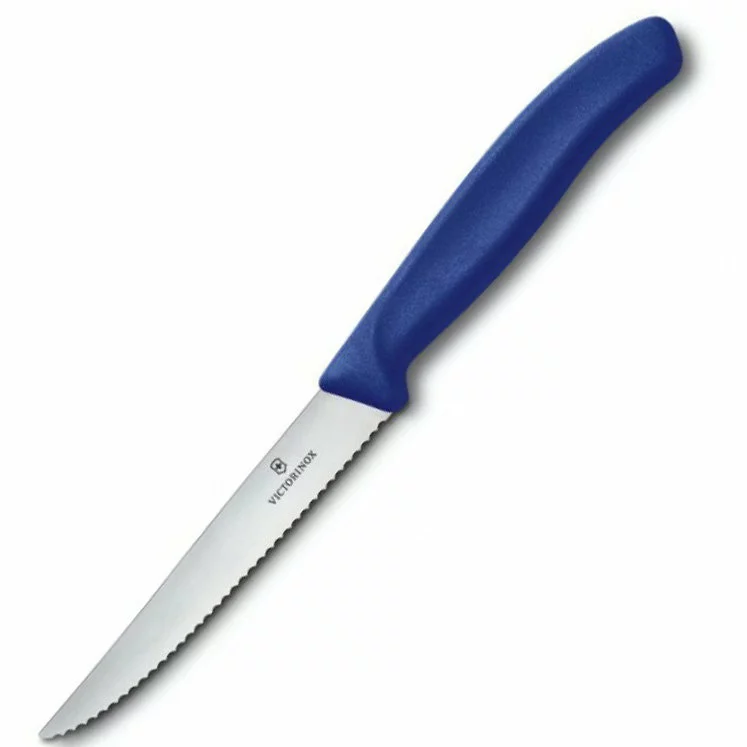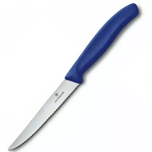 Ніж кухонний Victorinox SwissClassic 6.7232.20 з клинком 110 мм з гострим вістрям і фірмової серрейторной заточуванням призначений для ідеальної нарізки м'ясних стейків. Нержавіюча сталь бездоганної якості, запатентована компанією Victorinox, не піддається корозії, не ламається, не кришиться і гарантує безвідмовну службу довгі роки. При цьому гостра заточка не змінює своїх якостей. Логотип відомого бренду розташований на лезі ножа і не тільки прикрашає прилад і радує фанатів продукції, але і зайвий раз підтверджує його якість.