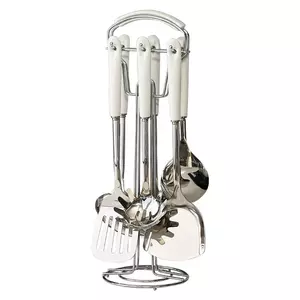 Набір кухонного приладдя 6 штук з керамічною ручкою на підставці, хром