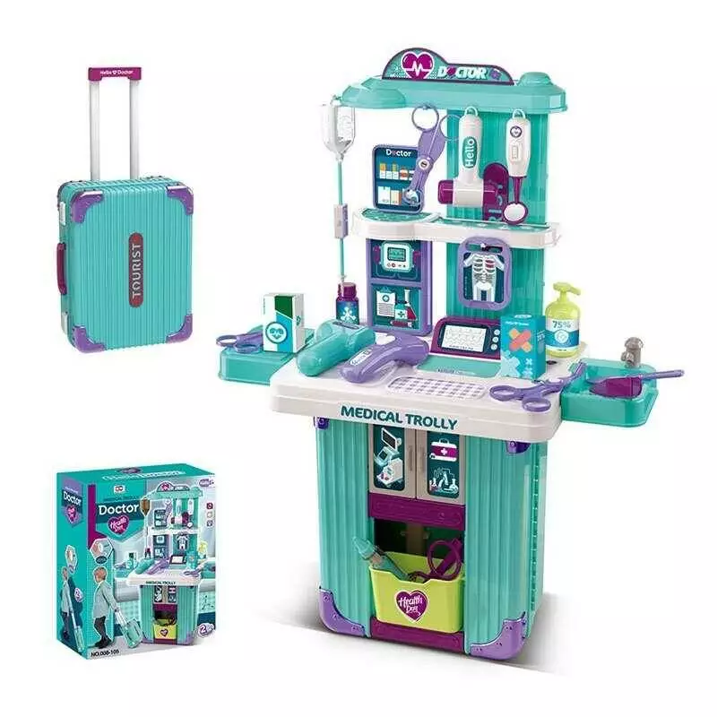 Набір лікаря 008-105 (8) валіза, висувна ручка, монітор, термометр, сканер, дзеркало, молоточок, окуляри, ножиці, шприц, в коробці