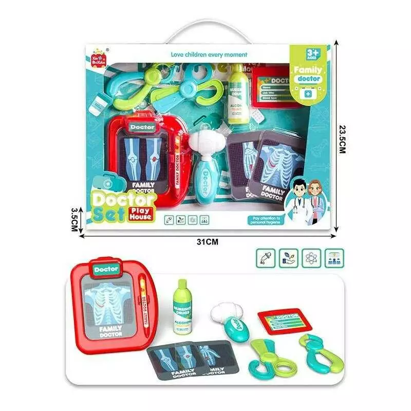 Набір лікаря 1208 A-1 (108) ножиці, щипці, молоточок, пляшечка, рентген - картки, бейдж, планшет для записів, в коробці