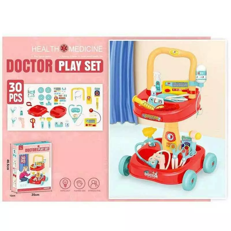 Набір лікаря 2219-1 (12) 30 деталей, на колесах, стетоскоп, крапельниця, шприц, пульсоксиметр, молоточок, в коробці