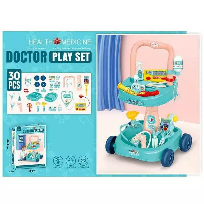 Набір лікаря 2219 (12) 30 деталей, на колесах, стетоскоп, крапельниця, шприц, пульсоксиметр, молоточок, в коробці
