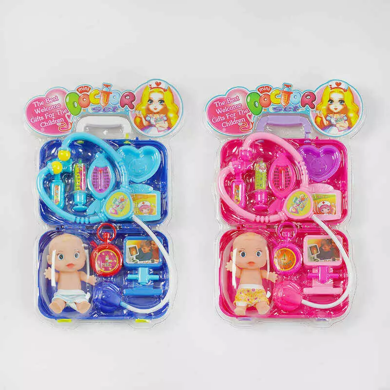 Набір лікаря 3 А 318 (72/2) 2 кольори, пупс, валізку, в слюді