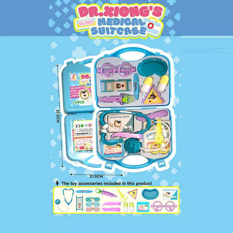 Набір лікаря 537 D2 (96/2) стетоскоп, ножиці, ніж, 2 пінцети, шприц, 2 таці, 2 пігулки, коробочка ліків, окуляри, бейдж, кушетка, у валізі, в слюді