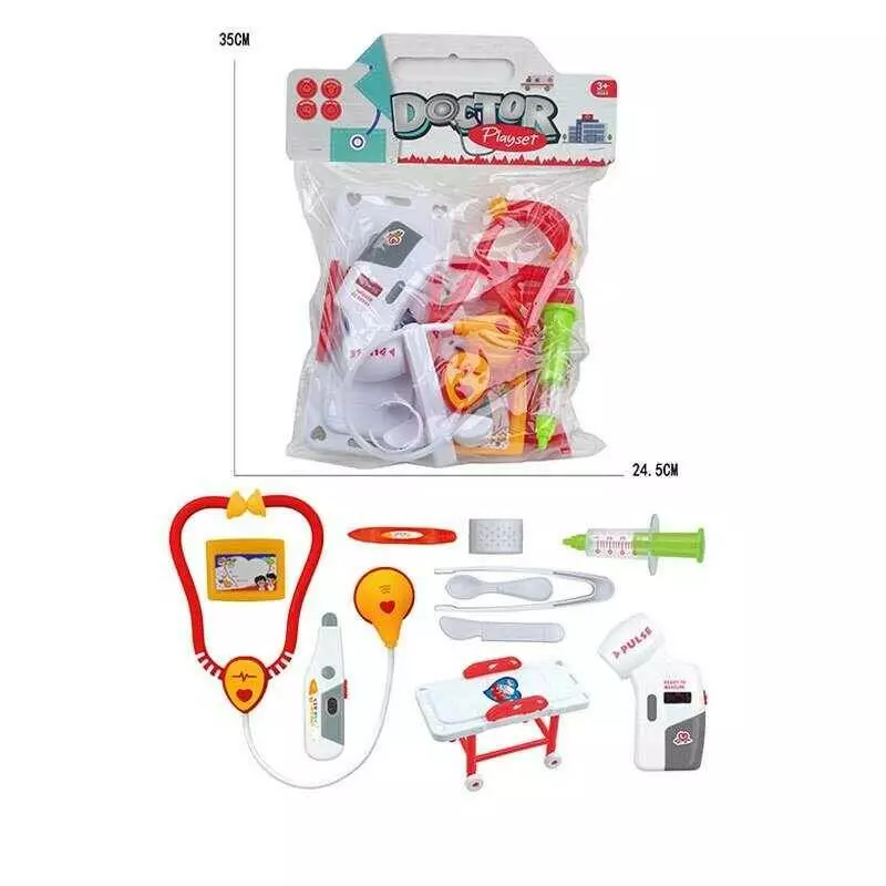 Набір лікаря 5507-7 (120/2) кушетка, стетоскоп, шприц, щипці, пластир, термометр, пульсометр, ніж, ложка, бейдж, в пакеті