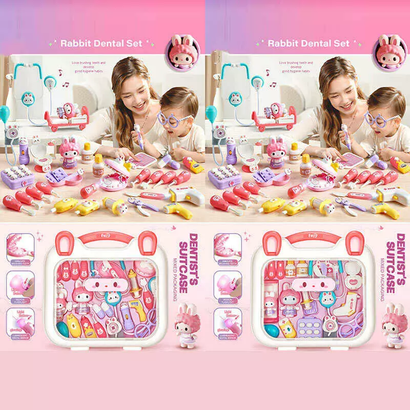 Набір лікаря 6710 (10/2) 2 види, підсвічування, звуки биття серця, фрази англійською, мелодія, 2 фігурки пацієнтів-кроликів, 2 термометри, у валізі