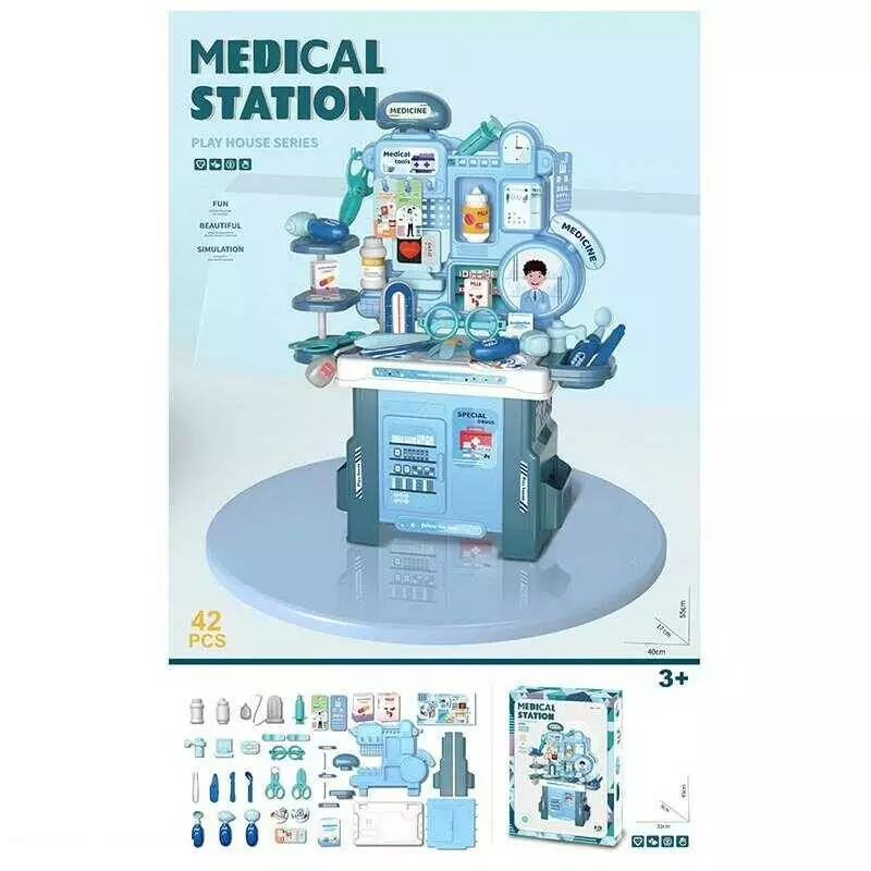 Набір лікаря 9023 (24), муляжі інструментів, столик із поличками, наліпки, окуляри, в коробці