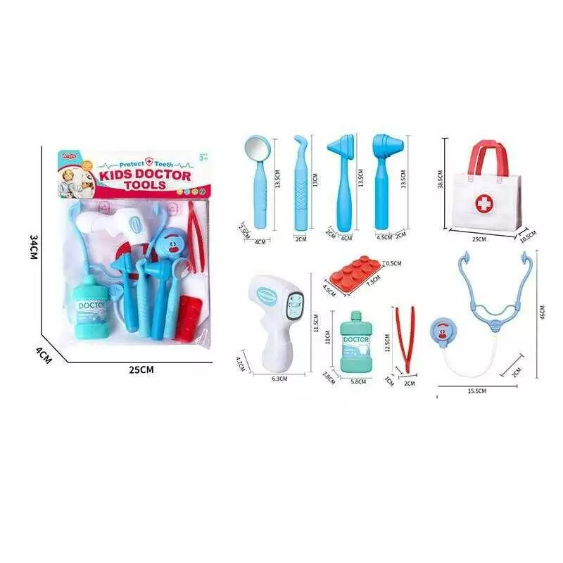 Головна > Каталог > Іграшки > Ігрові набори > Набір лікаря A 80-1 (144/2) термометр, стетоскоп, дзеркальце для огляду, пінцет, медична сумочка, в пакеті оптом