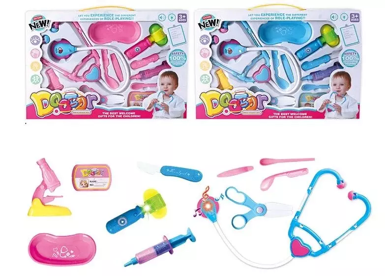 Фотография 1 товарной позиции интернет-магазина детских игрушек www.smarttoys.com.ua Набір лікаря B 003 (36/2) 2 кольори, 11 аксесуарів, підсвічування, звук, в коробці