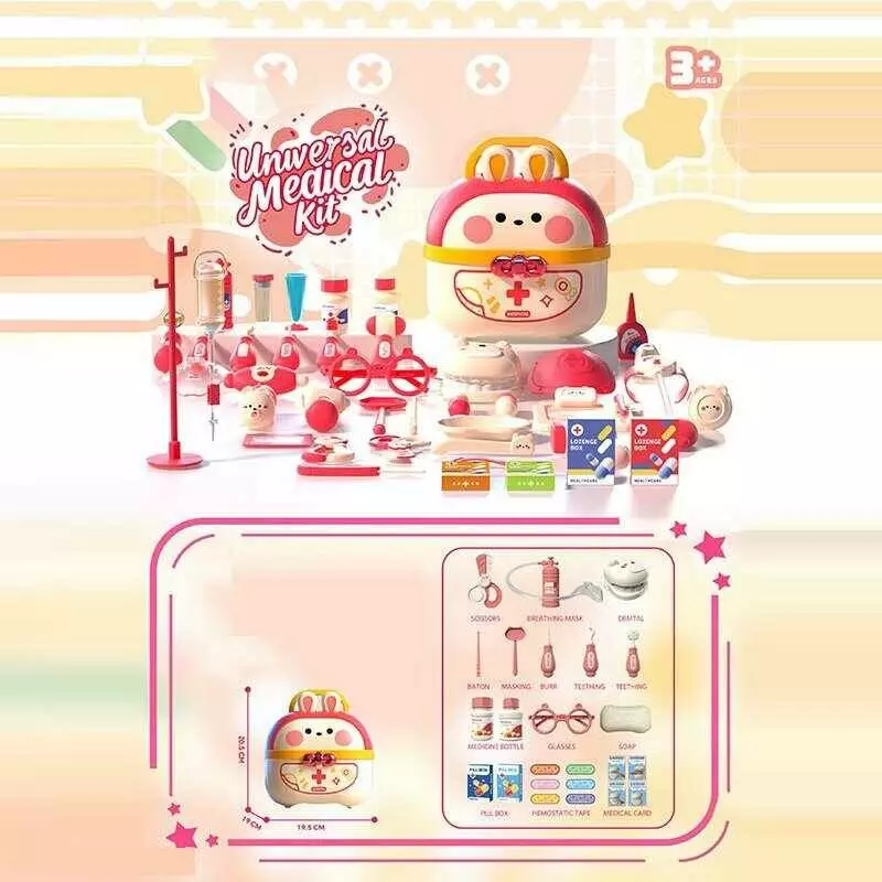 Набір лікаря JQ 911 (24) щелепа, киснева маска, ножиці, хірургічні інструменти, пластирі, 2 пляшки, коробочки з ліками, в боксі