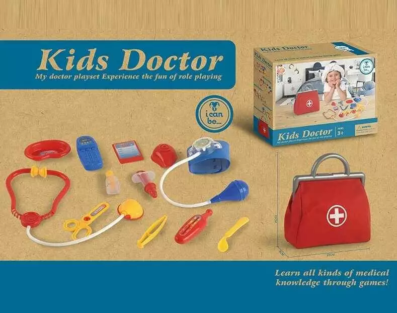 Набір лікаря KJ 1933 A-7 (72/2) медична сумка, стетоскоп, телефон, тонометр, шприц, термометр, ножиці, в коробці
