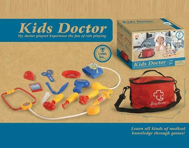 Набір лікаря KJ 1934 A-8 (60/2) медична сумка, стетоскоп, молоточок, тонометр, отоскоп, шприц, термометр, ножиці, в коробці