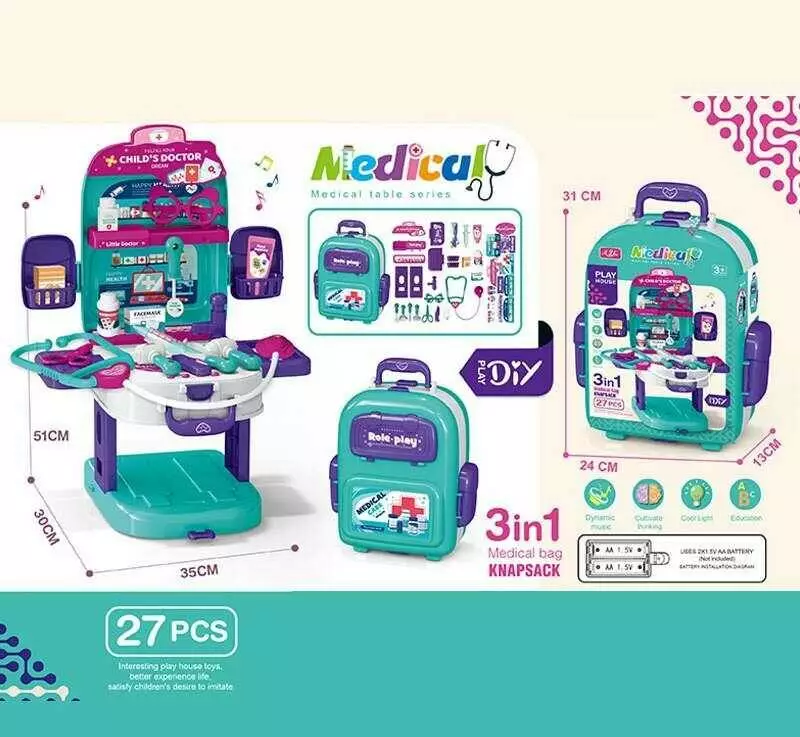 Головна > Каталог > Іграшки > Ігрові набори > Набір лікаря T 2158-1 (24/2) медичний столи, озвуч. англійською мовою, набір інструментів, стетоскоп, термометр, шприц, ножиці,на батарейках,у валізі оптом