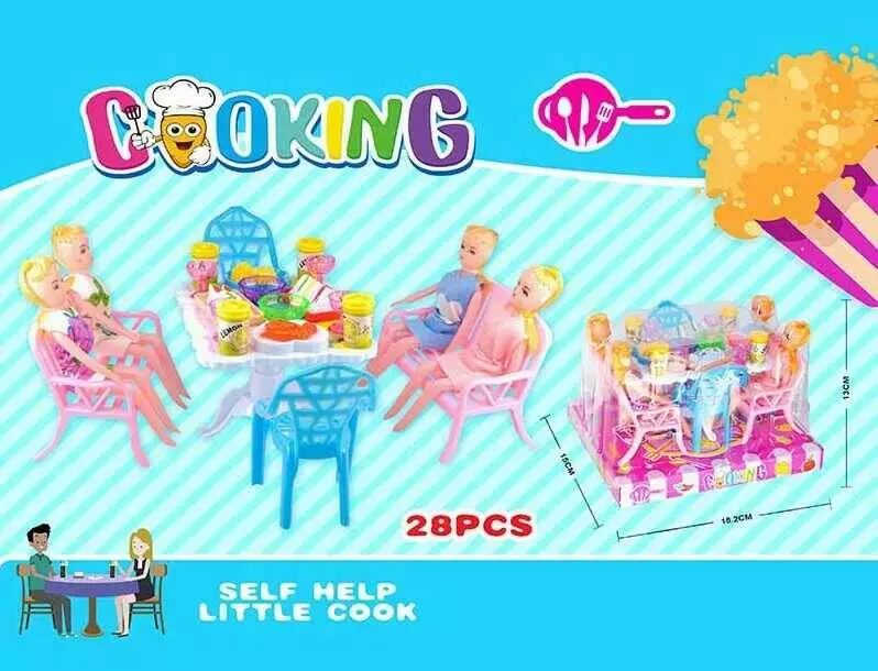 Набір ляльок 77-84 (90/2) 4 ляльки, 4 стільці, стіл, аксесуари, в слюді