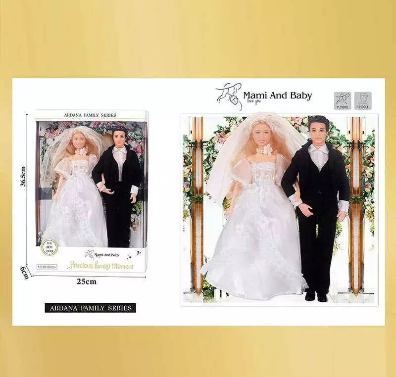 Набір ляльок A 801-1 (48/2) “Весілля”, висота 30 см, 2 ляльки, шарнірне з’єднання суглобів, знімне взуття, аксесуари, в коробці