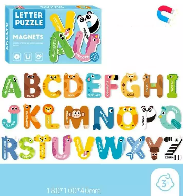 Набір магнітів C 73795 (96) "Абетка", назви тварин англійською мовою, в коробці