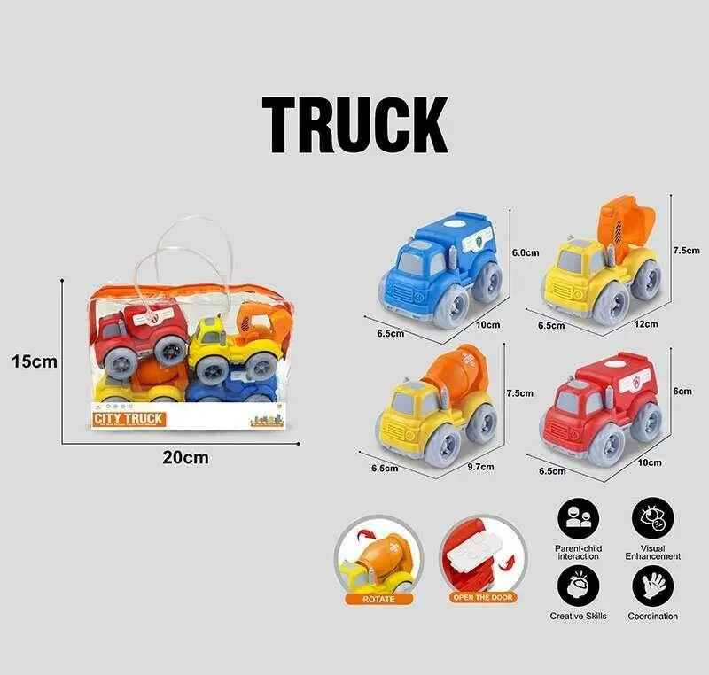 Набір машин 854-2 (120/2) 4 спецтехніки, середня довжина 10 см, рухомі елементи, в сумці