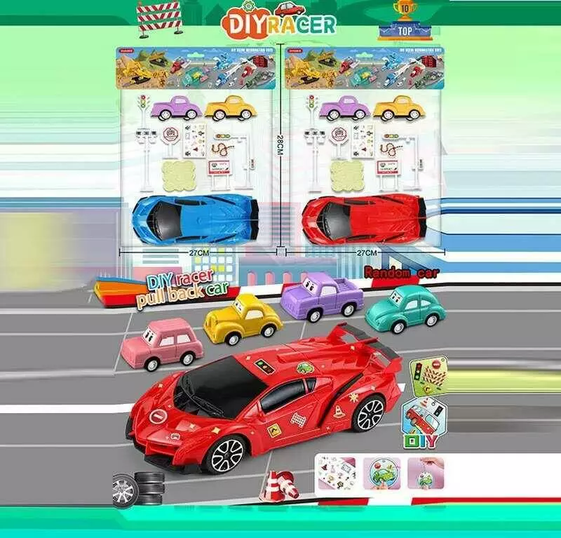 Набір машин 886 A (96/2) 2 види, 3 машини, інерція, дорожні знаки, аксесуари, наліпки, в пакеті