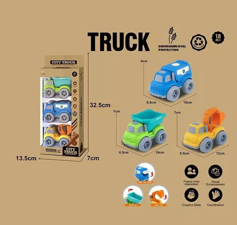 Набір машин 913-3 (96/2) 3 спецтехніки, середня довжина 11 см, рухомі елементи, біопластик, в коробці