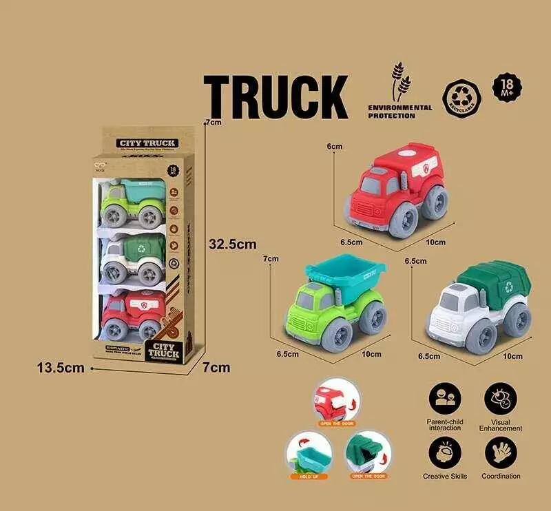 Набір машин 913-6 (96/2) 3 спецтехніки, середня довжина 10 см, рухомі елементи, біопластик, в коробці