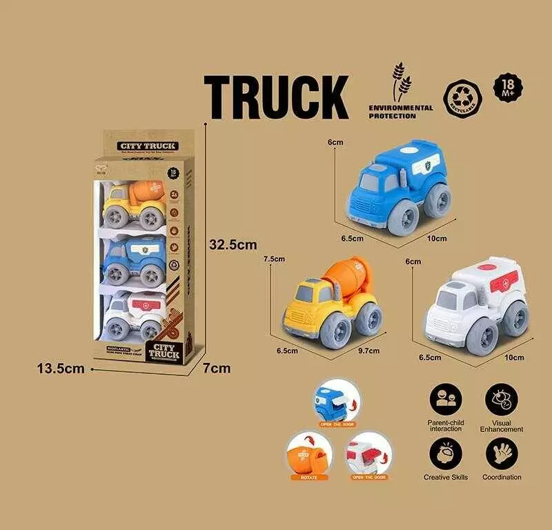 Набір машин 913-7 (96/2) 3 спецтехніки, середня довжина 10 см, рухомі елементи, біопластик, в коробці