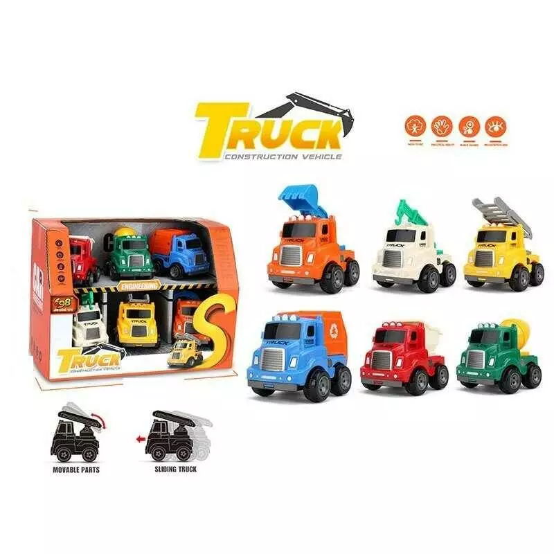 Головна > Каталог > Іграшки > Іграшкові машинки > Набір машин JS 73 (12) спецтехніка, 6 штук, середній розмір: 8х6х8 см, інерція, рухомі елементи, в коробці оптом