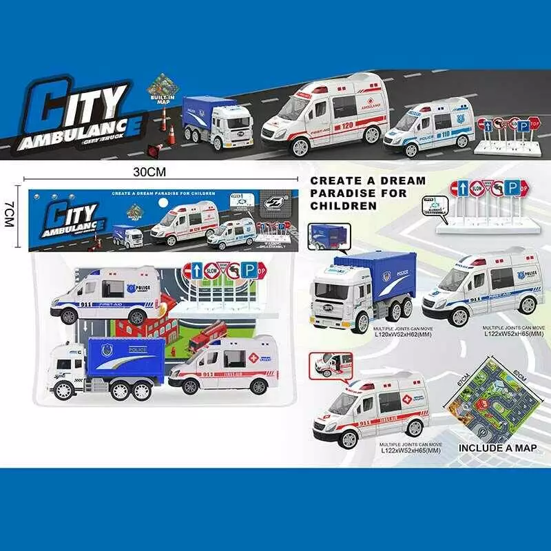 Набір машин JW 567-049 (96/2) “City Ambulance”, інерція, 3 машинки, килимок, в пакеті